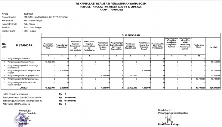Berikut rekaputulasi realisasi penggunaan dana bos tahap 1 dapat di buka detailnya disini